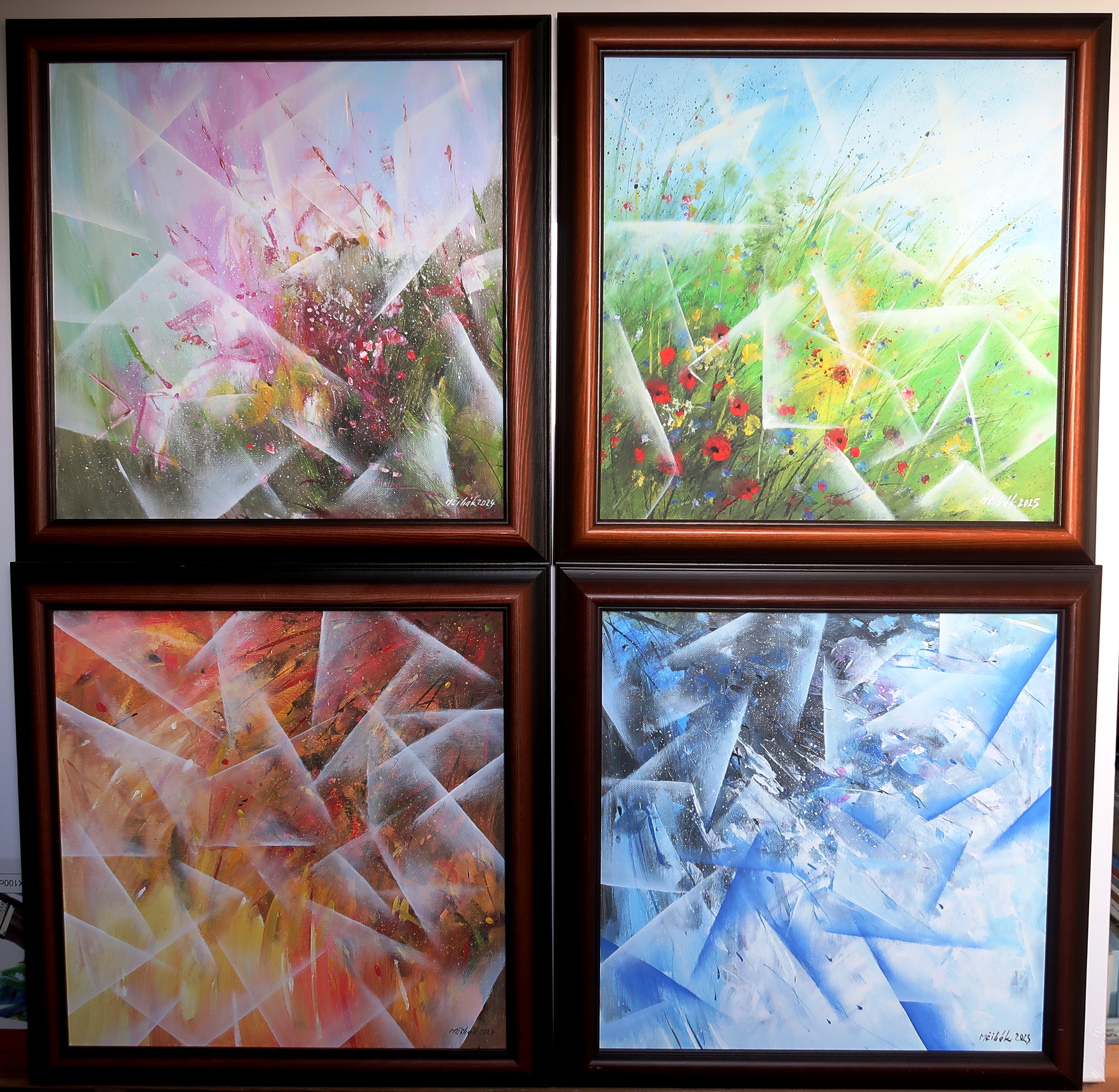 Abstraktní nálada I-IV roční období 4 ks - originální malby akrylem na napnutém plátně/blindrámu - závěrečný trvanlivý lak - každé plátno v efektním dřevěném rámu 47x47 cm