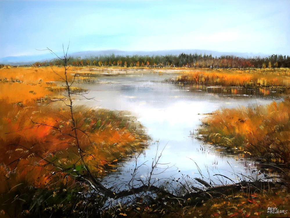 Brdy - Padrťské rybníky - orig. malba akrylem na napnutém plátně/blindrámu - velký efektní rozměr 80x60 cm - volně/bez rámu - namalováno i po stranách plátna - závěrečný lak - možno hned zavěsit...