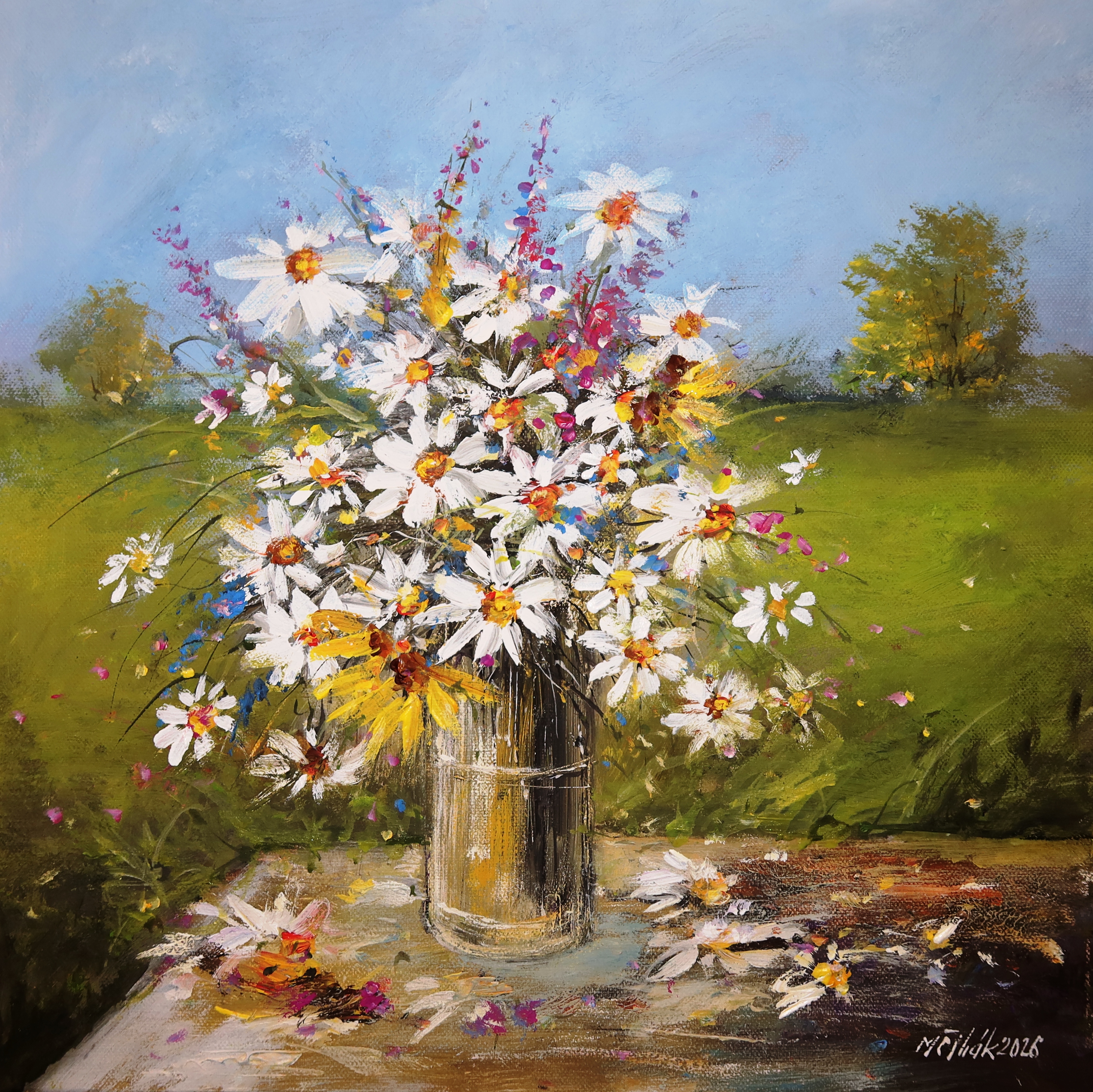 Luční kvítí - originální malba akrylem na napnutém plátně/blindrámu - závěrečný trvanlivý lak - rozměr 40x40 cm - volně - bez rámu - namalováno i po stranách plátna - možno ihned zavěsit...