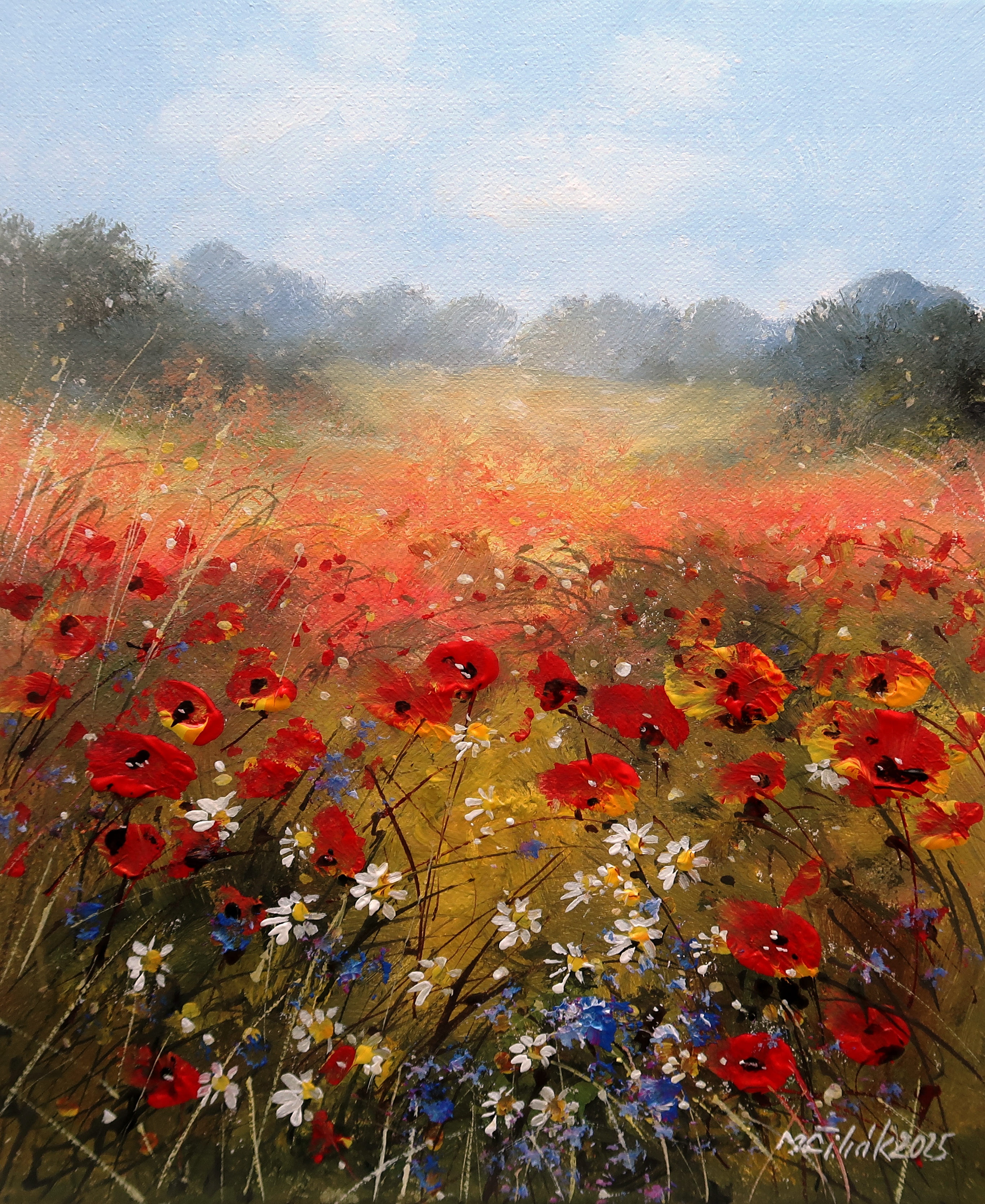 Makové pole - originální malba akrylem na napnutém plátně/blindrámu - závěrečný trvanlivý lak - rozměr 30x25 cm - volně - bez rámu - namalováno i po stranách plátna - možno ihned zavěsit...