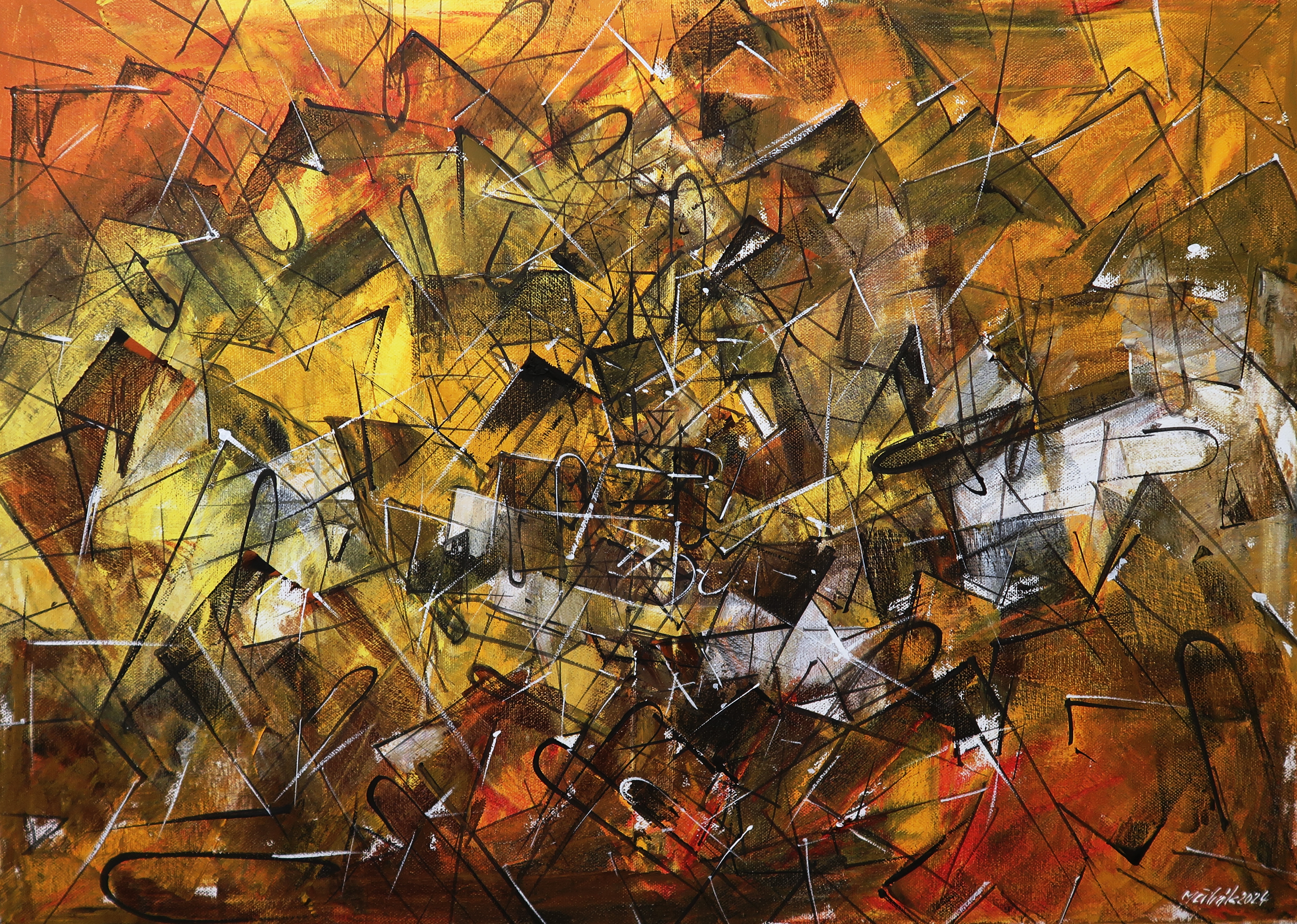 Pocta kubismu - originální malba akrylem na napnutém plátně/blindrámu - závěrečný trvanlivý lak - větší rozměr 70x50 cm - volně - bez rámu - namalováno i po stranách plátna - možno ihned zavěsit...