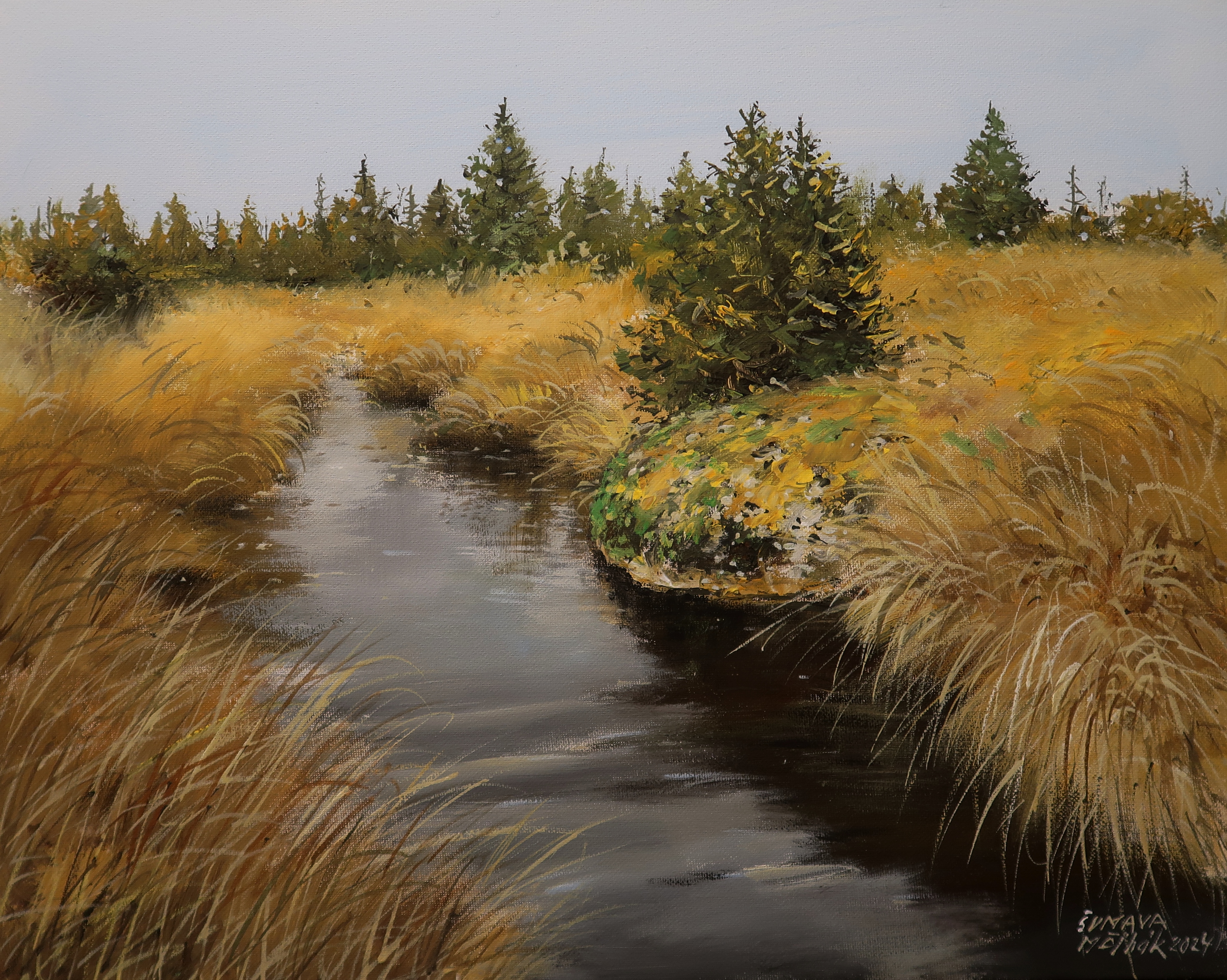 Šumava - Údolí Rokytky - originální malba akrylem na napnutém plátně/blindrámu - závěrečný trvanlivý lak - rozměr 70x50 cm - volně - bez rámu - namalováno i po stranách plátna - možno ihned zavěsit...