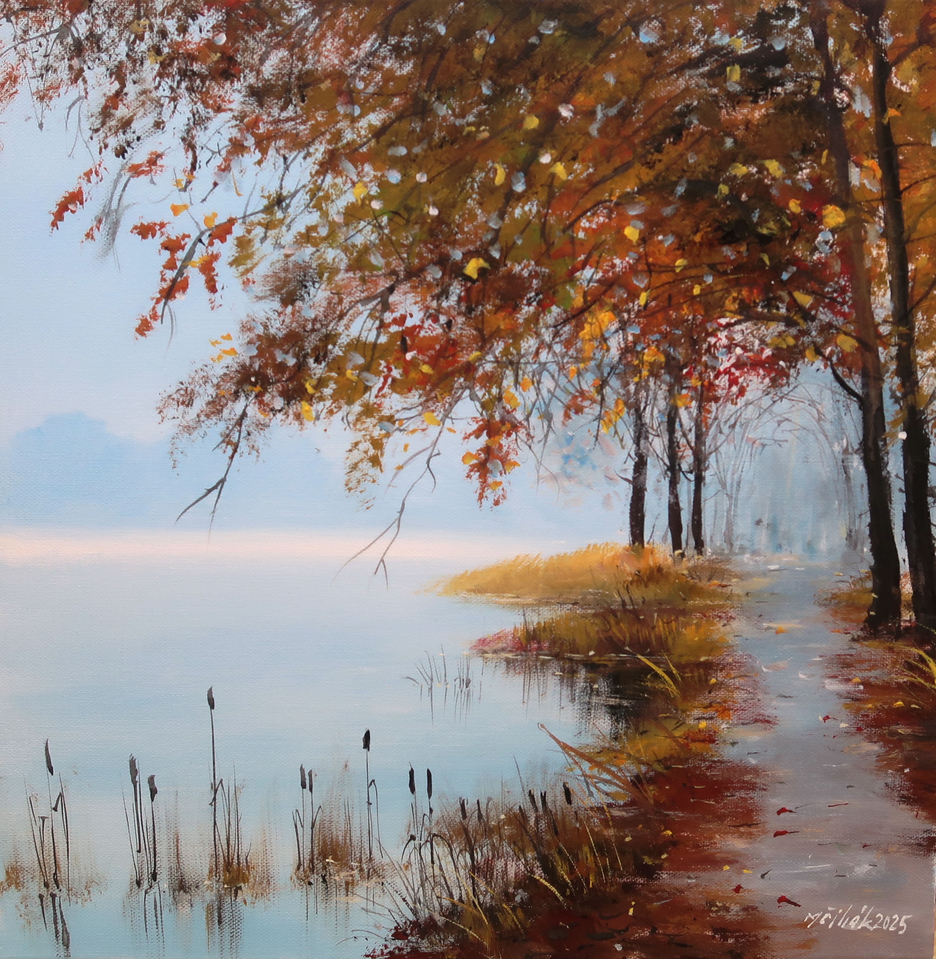 U rybníka - originální malba akrylem na napnutém plátně/blindrámu - závěrečný trvanlivý lak - rozměr 40x40 cm - volně - bez rámu - namalováno i po stranách plátna - možno ihned zavěsit...